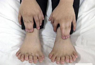Çin'deki Shenyang kasabasında yaşayan 6 yaşındaki çocuğun ellerinde 15, ayaklarında da 16 parmak var. Hastanede tedavi altına alınan çocuğun genetik bozukluk sebebiyle fazla parmaklara sahip olduğu düşünülüyor. Çocuğun fazla parmaklarının cerrahi bir operasyonla alınacağı açıklandı.