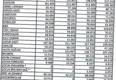 İstatistiksel verilere göre kategoriler bakımından en yüksek muayene sayısı, dahiliye, çocuk hastalıkları, kadın doğum, göz, ortopedi, genel cerrahi, deri ve zührevi hastalıklar, KBB, nöroloji ve psikiyatrik hastalıkların öne çıktığı görülüyor. (malatyahaber.com)