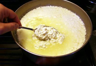 Bekleme süresi dolmadan ben daha fazla dayanamayıp tencerenin ağzını açtım ve küçük bir şok yaşadım sütüm kesilmemiiiiş!!!… Bu hayal kırıklığıyla çatacak adam aradım epey bir süre.:)) Tabi millet bilmiyor ki, peynirimin başarısız olduğunu sanıyorum diye sinirliyim. 1 saat kadar sonra tekrar baktım tencereye ve cesaretimi toplayıp bir kasık batırdım. Eh işte kaşık içinden temiz çıkı ama, bence hala kesilmemiş bu süt!!!…