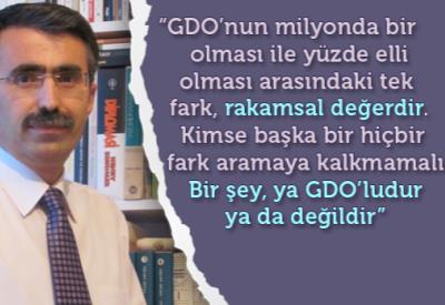 GDO'nun milyonda bir olması ile yüzde elli olması arasındaki tek fark, rakamsal değerdir. Kimse başka bir hiçbir fark aramaya kalkmamalı. Bir şey ya GDO'ludur ya da değildir. Şu kadarı GDO'lu yasılır, şu kadarı GDO'suz sayılır demek insanları aldatma girişimidir. Ahlaki bir izahı mümkün değildir. GDO meselesi, sadece sağlık boyutuyla ele alınamaz. Meselenin ahlakî, dinî, çevresel, kültürel, sosyolojik, sağlık ve mülkiyet boyutuyla ele alınması gerekir. Ama oranı ne olursa olsun sağlık açısından zararsız olduğunu söyleyen her kim varsa biliniz ki yalan söylüyor.