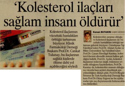 Klinik Farmakoloji Derneği Başkanı Prof.Dr. Cankat Tulunay da, kolesterol ilacının zararlı olduğunu iddia etti. Tulunay, yıllardır bu konuya değindiğini belirterek, kolesterol ilaçlarının tamamen ilaç firmalarının uydurduğu halkı sömüren bir sistem olduğunu söyledi, “Sahte araştırmalarla, uydurma araştırmalarla halkı ve doktorları kandırıyorlar.