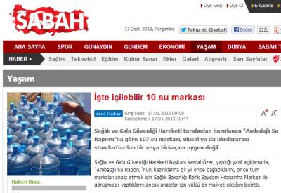 Su raporumuz sonrasındaki bir gelişmeyle ilgili dikkatli bir gönüllümüzden e-posta aldık. Gelen e-posta sağlığımızın altını oyanlarla mücadele ettiğini düşündüğümüz Sabah Gazetesi'nin aleyhimizde bir makaleye yer verdiği anda su raporu haberimizi de sildiğini bildiriyordu. İnanmak istemedik ama hem gelen resimler, hem de gelen linkler iddiayı doğruluyordu. İşte detaylar: